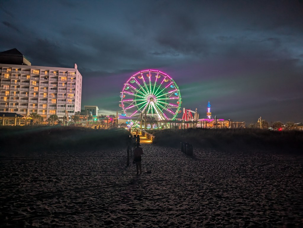 The boardwalk illuminates the beach at night, creating the perfect ambiance for a walk on the beach to end a long, sunny day.